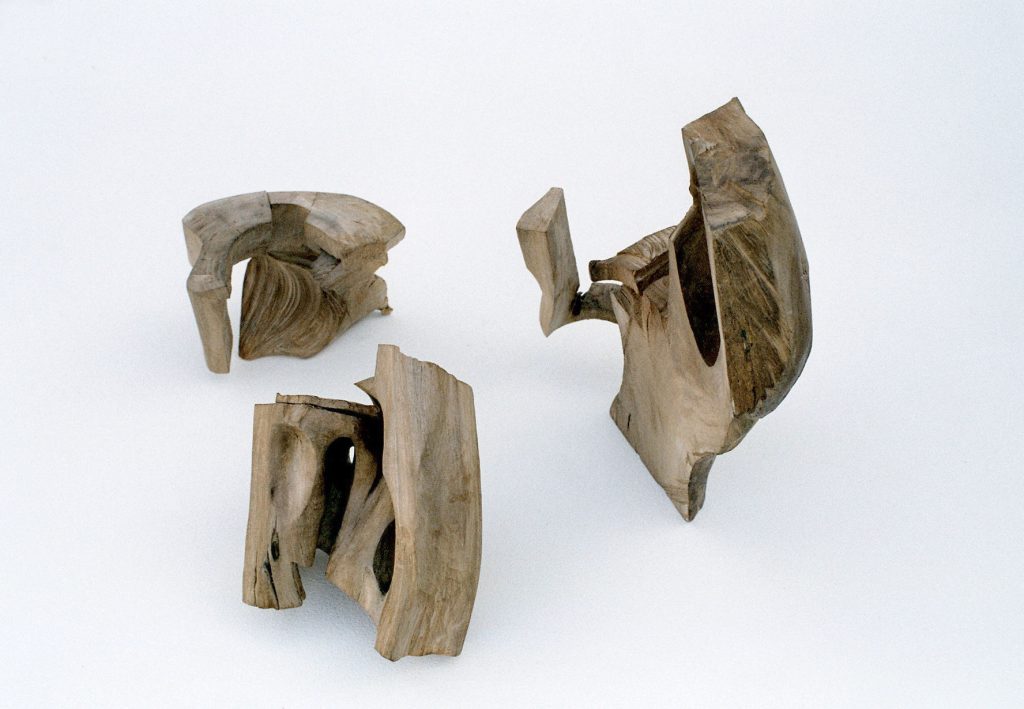 Była to jedna z prac wykonanych i dedykowanych Eduardo Chillidzie, po artystycznej podróży do jego pracowni zamienionej w muzeum8. Dedykowane mu rzeźby skupiają się na napięciach pomiędzy organicznym i architektonicznym aspektem formy. Organiczny porządek reprezentują miękkie, cielesne przebiegi drewna z zachowaną naturalną powierzchnią. Porządek architektoniczny reprezentują twarde, geometrycznie opracowane fragmenty. Rozważania te rozwinięte zostały w pracy Historie na dwa klucze (2003), gdzie obok koncepcji tworzenia różnych wariantów i różnych treści jednej rzeźby w zależności od ilości użytych części powrócił zamysł nawiązania do figuracji, do przedstawienia torso lub figury leżącej.