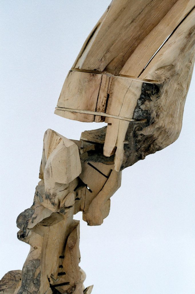 Po rzeźbie Cicha pozycja, być może z przesytu analityczną pracą, podjąłem zupełnie odwrotną metodologię, kładąc nacisk na intuicyjność decyzji oraz większą ciągłość i płynność procesu tworzenia. Rzeźbiąc od razu w materiale, bez szkiców i przygotowań, zrezygnowałem także ze „zdobywania przestrzeni” i rozbudowy struktury na zewnątrz. Skierowałem proces do środka. Można powiedzieć: powrót do najbardziej pierwotnych tradycji, choć w możliwie nieopatrzonym ujęciu — taki był przynajmniej zamiar.